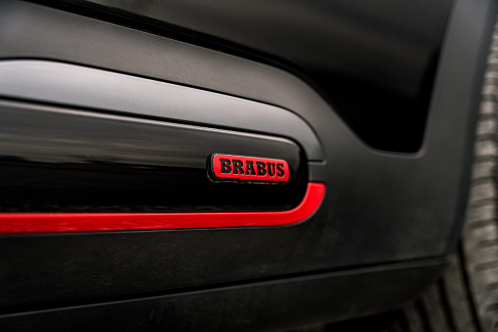 The Brabus variant stands out through a restrained approach. Its specific elements remain subtle; well-integrated red accents, matching brake calipers, and a broader choice of exterior colors compared to other versions. The overall look avoids excessive styling and fits more naturally into an upmarket positioning than a purely sporty statement.